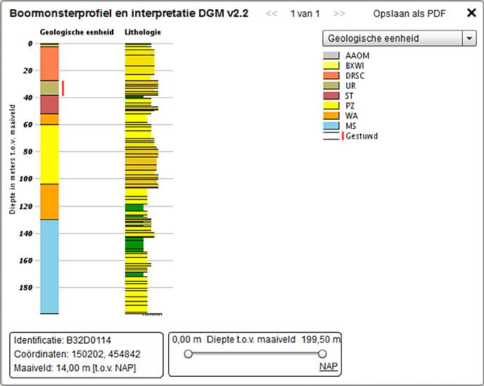 Voorbeeld van een visualisatie van een boormonsterprofiel dat gebruikt is voor het model van DGM