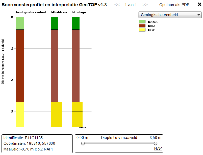 Het boormonsterprofiel met interpretaties kan op de kaart in Stap 1 gevisualiseerd en opgeslagen worden.