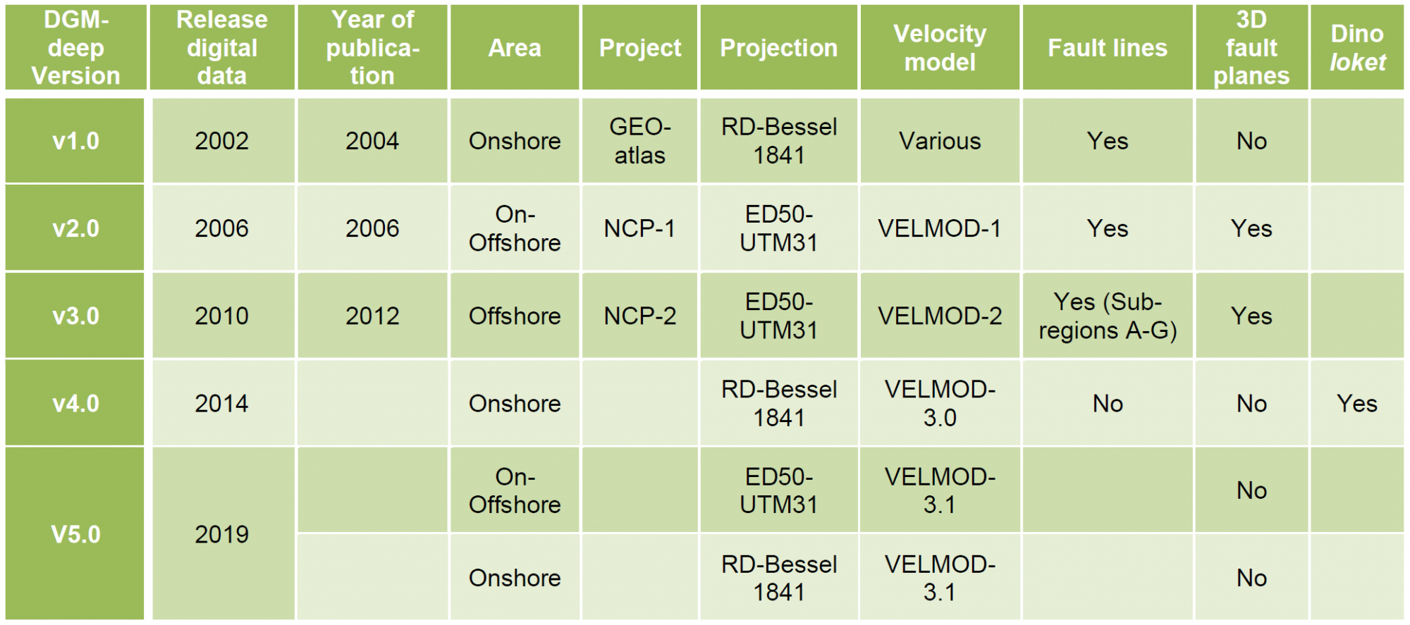 Current and previous versions of the DGM-deep model and related data can be retrieved through the Dutch Oil and Gas Portal (see details on versions in table below). The currently released DGM-deep v5.0 is a model of the Netherlands on- and offshore (more information, see Model details). DGM-deep v5.0 can also be examined in a viewer and retrieved via this portal.