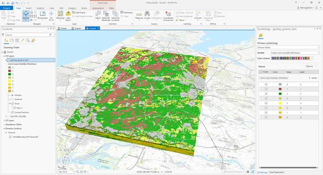 NetCDF-files of REGIS II and GeoTOP can be downloaded from TNO’s OPeNDAP-server. NetCDF (Network Common Data Form) is a data format that supports array-oriented multi-dimensional data such as the 2D stacked grids of REGIS II and the 3D voxels of GeoTOP. The OPeNDAP-server allows users to select an area of interest and download that part of the model as a NetCDF-file. The instruction describes how a part of GeoTOP can be downloaded. It also describes how to open the file as a voxel layer in Esri’s ArcGIS Pro (version 2.6.0 and higher).