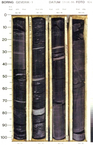 The ‘hot shales’ pass upwards into the non-bituminous, dark-coloured mudstones of the Epen Formation. The upper boundary is defined by the disappearance of the bituminous character, reflected by an abrupt upward shift to lower GR-log readings.