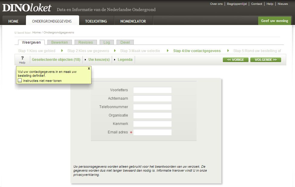 Door aanvinken van het vakje onderaan geeft u aan of u op de hoogte wilt blijven van het laatste nieuws over de Basis Registratie Ondergrond.