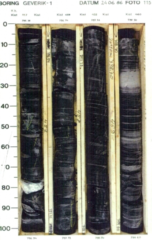 Langs de noordelijke rand van het Londen-Brabant Massief, rust het Laagpakket van Geverik (basale bitumineuze kleisteen), op de carbonaten van de Kolenkalk Groep. In boorgat Geverik-1 is deze overgang geleidelijk en schijnbaar concordant; elders echter kan dit contact discordant zijn en plaatselijk zonder de basale kleisteen (boorgat S02-02). Boorgat A14-01 laat de Mid Noordzee Hoog opeenvolging zien, waar de Yoredale Formatie naar boven toe overgaat in de Formatie van Epen. De grens wordt getrokken aan de top van de bovenste door carbonaat gedomineerde opeenvolging.